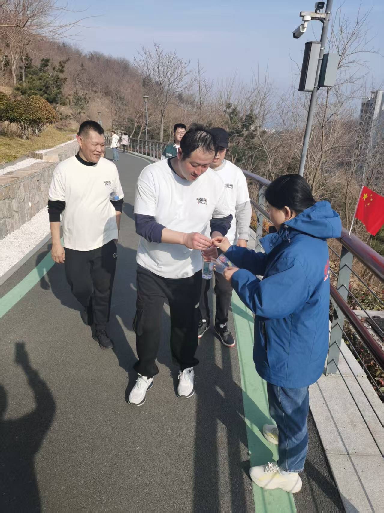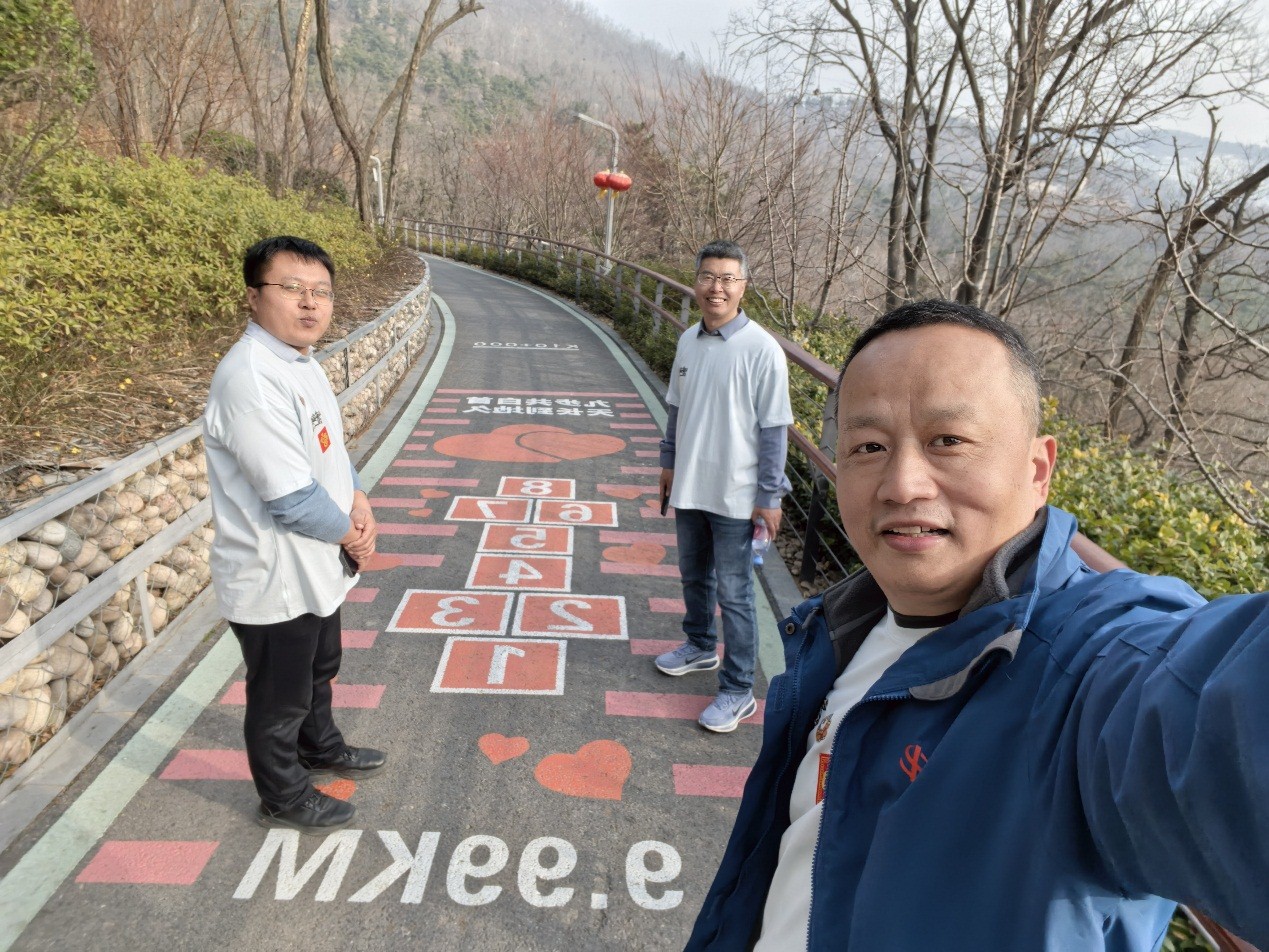 13:45,随着一声令下,身着统一服装的参赛队伍沿浮山绿道浩荡出发。全程13.14公里的路线串联起文翠湖、莲花湖、山海通廊、彩虹栈道等特色景点,沿途共设置5个打卡点。大家或结伴健步,或驻足打卡,既欣赏了浮山春色,又在轻松氛围中拉近了距离。活动特别设置了打卡环节,需集齐全部5个打卡点贴纸方为完赛,增加了趣味性的同时,也让大家在互相鼓励、协作前行中感受到团队的力量。