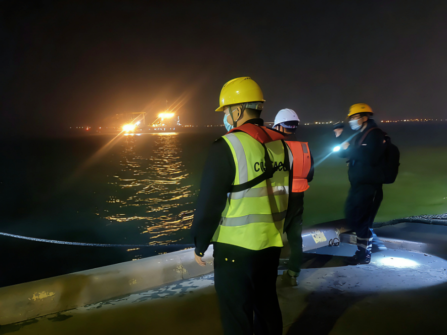 凌晨三点,山东港口日照港石臼港区南8#泊位,外理公司检验鉴定中心检验鉴定班组长高宁紧了紧衣领,登上散货外轮,开始夜间水尺计重作业。