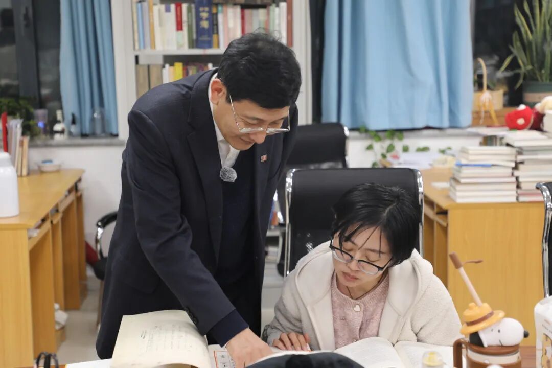 杜泽逊(左)与学生研讨具体问题。