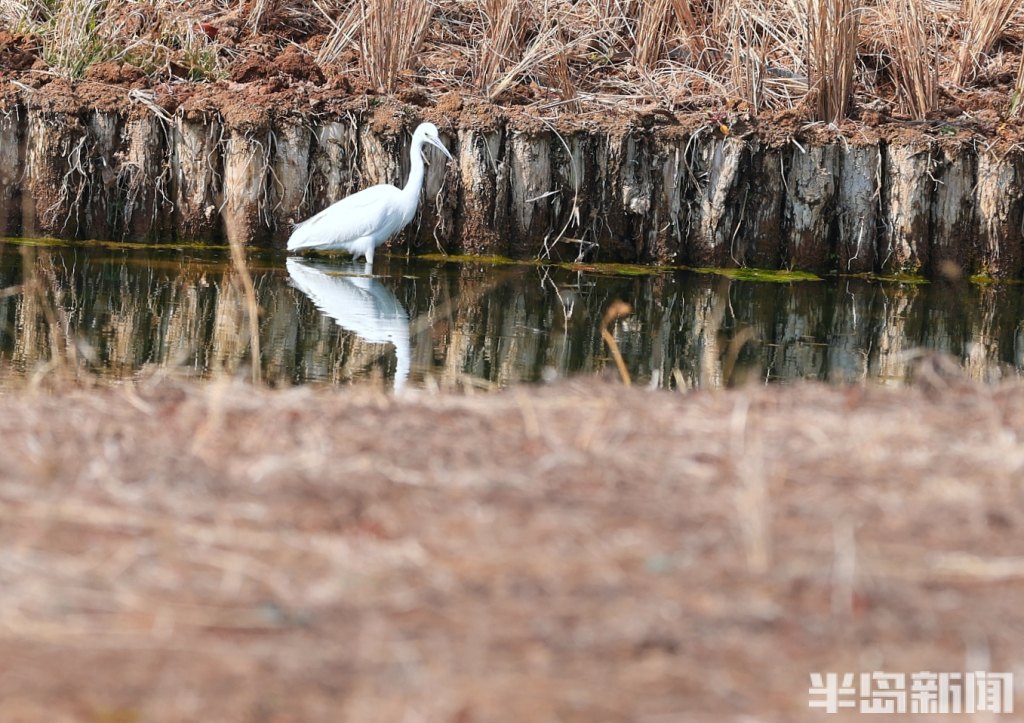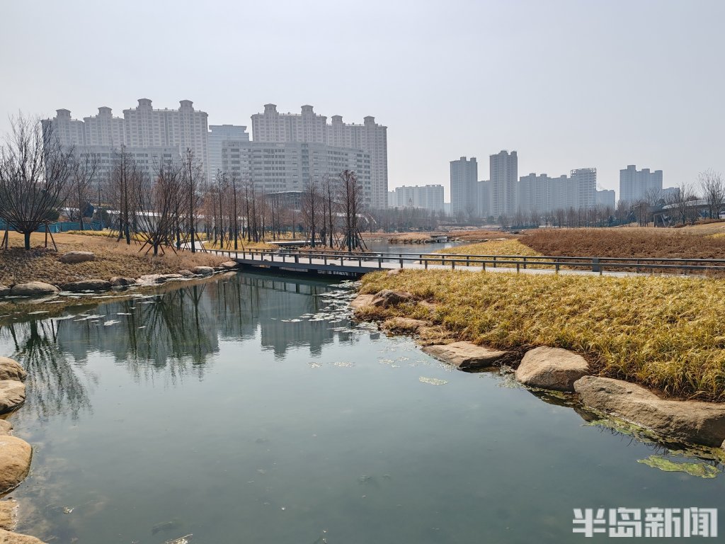 3月4日,尽管靠近松岭路的区域还没有完全施工完成,但这里的滨河湿地景象已经呈现,白鹭等水鸟在水中觅食,有的市民提前来到这里体验漫步其中的惬意。