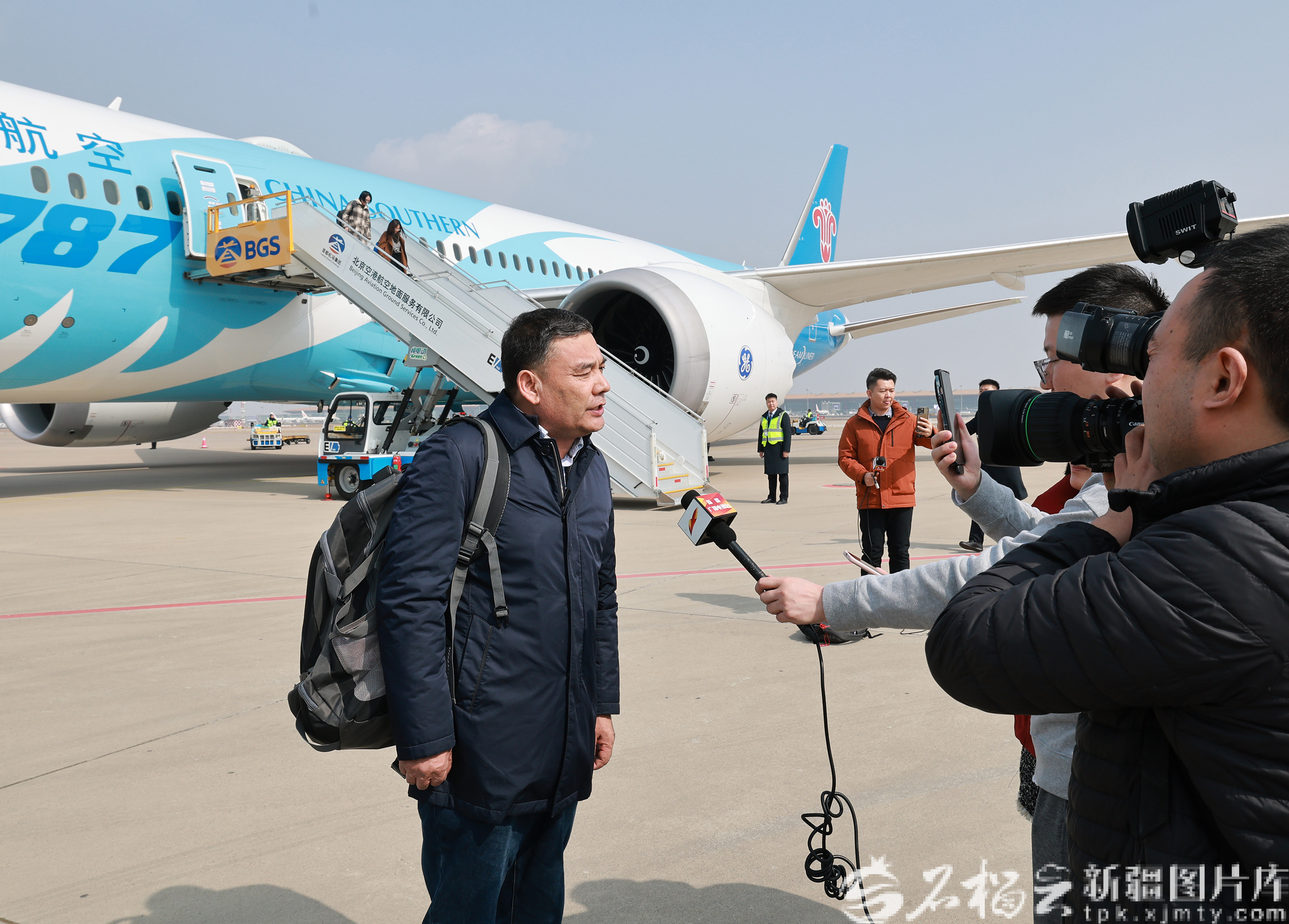 3月3日,出席十四届全国人大四次会议的在疆全国人大代表乘机抵达北京。天山网-新疆日报记者 崔志坚摄