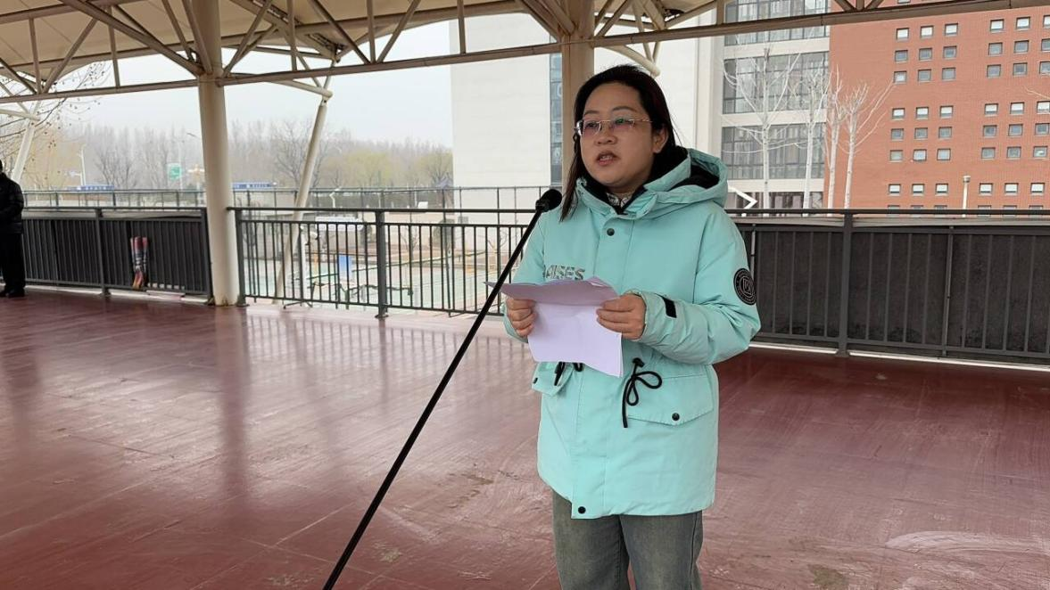 站在国旗下,陈芸以《从80年前烽火到今日中国——在动荡世界中读懂和平的珍贵》为主题,用跨越80年的时空对话,为学生们展开了一幅家国发展的壮阔画卷。她以1944年衡阳保卫战、少年远征军的壮烈事迹为切入点,讲述了抗战年代里,无数少年志士,用血肉之躯守护家国的英雄故事;对比当下2026年的中国,空间站遨游太空、国产航母巡航海疆、高铁驰骋山河,同学们在明亮教室中安心求学的和平图景,让学生们深刻体会到,如今的岁月静好,是无数先辈用生命换来,是国家发展用实力铸就。