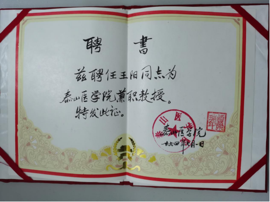 1994年泰山学院聘任王阳为泰山医学院兼职教授