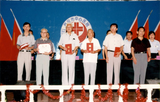 2001.8.15泰安市中心医院成立了业务老专家顾问委员会。在大会上,局领导、院领导向他们颁发聘书(前排右一王阳)
