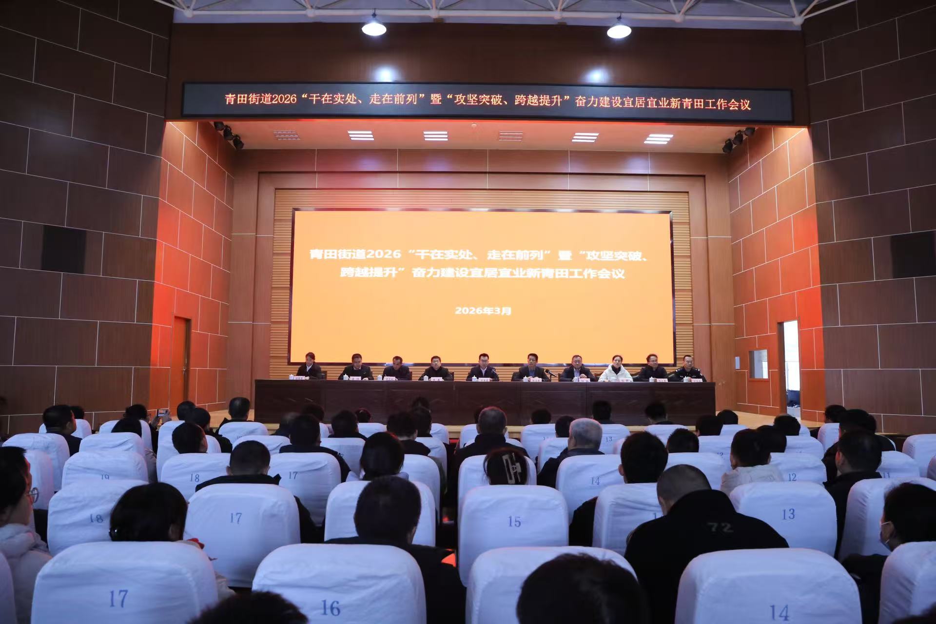 人勤春来早,战鼓催征急。3月3日,滨州高新区青田街道召开2026“干在实处、走在前列”暨“攻坚突破、跨越提升”奋力建设宜居宜业新青田工作会议。会议深入贯彻落实省、市、区系列会议精神,动员全街道上下迅速收心归位、担当实干,全力推动经济社会高质量发展。街道党工委书记刘通通出席会议并讲话,街道党工委领导班子成员、副科级领导干部、派出所所长、全体机关干部、村党组织主要负责同志参加会议。