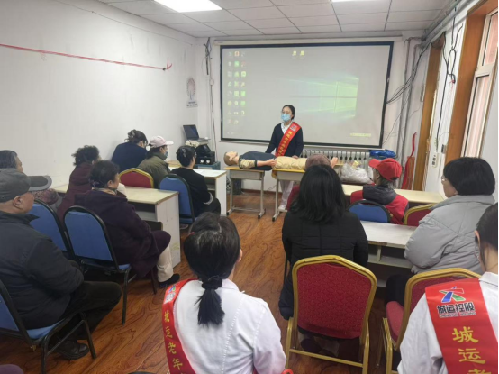 活动现场,来自青岛市城运老年病医院的专家志愿者们化身“健康科普员”,通过老年健康小课堂、现场健康服务等形式,为社区老年居民提供全流程专业健康指导。针对辖区老年群体占比高、居家健康照护需求集中的特点,在老年健康小课堂环节,医护志愿者通过PPT演示,围绕防跌倒、防脑卒中、防认知下降、合理用药等老年健康核心问题,用通俗易懂的语言讲解疾病预防知识和日常保健要点。同时,医护人员还与居民开展家庭照护技能教学互动,手把手教授拍背、翻身、压疮预防等实用照护技巧,帮助老年人家属更好地掌握科学居家照护方法,切实解决居家养老的实际难题。