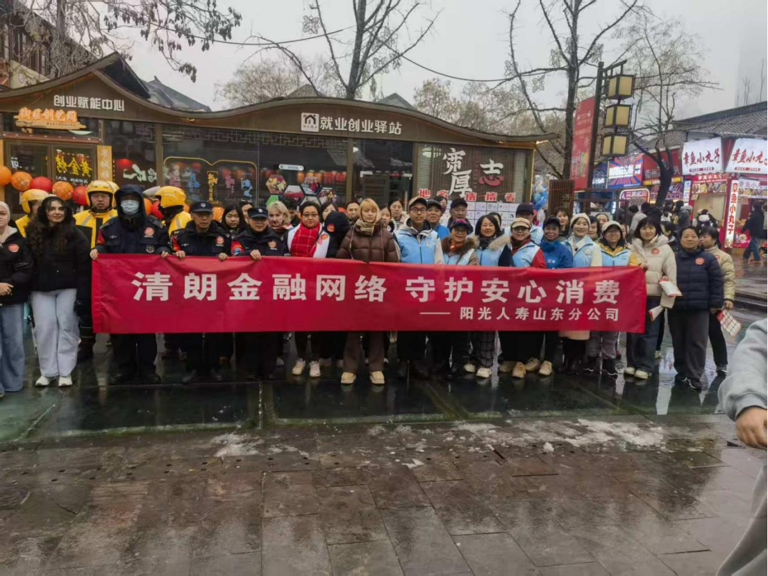 在这片浓郁的传统文化氛围中,阳光人寿山东分公司的志愿者们穿梭其间,向过往群众发放宣传折页和消保文创用品。“天上不会掉馅饼,一夜暴富是陷阱”“产品介绍要看清”“守护钱袋子,护好幸福家”——印着醒目标语的手持KT板成了街区里的“移动广告牌”,引得路人纷纷驻足。
