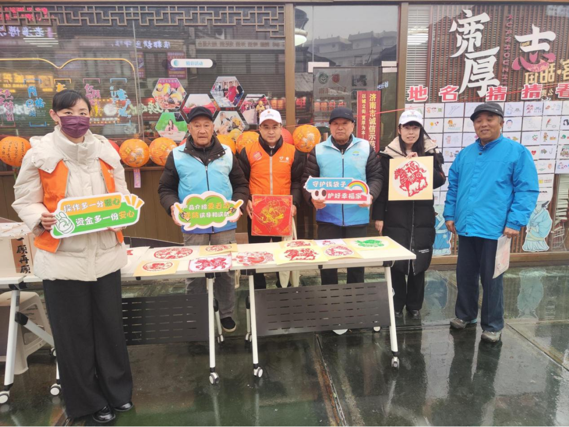 3月2日,济南宽厚里主街区人头攒动、热闹非凡,“马年元宵‘益’起乐”主题活动在这里火热开展。与往年不同的是,今年的集市上多了一群手持KT板、背着文创帆布袋的“消保宣传员”——阳光人寿山东分公司的志愿者们巧妙将3·15金融教育宣传“搬”进非遗集市,在糖画香、剪纸韵与灯谜趣中,为社区居民、商户、游客、外国友人、外卖小哥等新市民群体编织了一张兼具文化温度与安全守护的节日“防护网”。