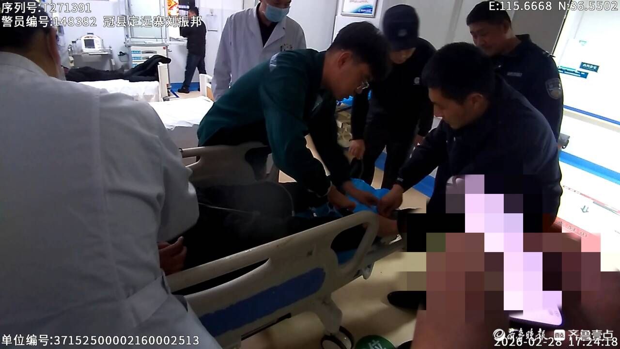 “快!送医院!”警车拉响警报,一路疾驰。因救援及时,男子已脱离生命危险。