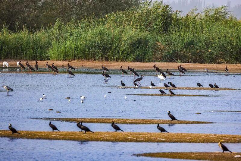 据统计,目前有白鹭、黑鹳等60余种水鸟在英吉沙南湖国家湿地公园栖息,其中不乏黑鹳等国家Ⅰ级重点保护野生动物,湿地生物多样性的保护成果日渐凸显。