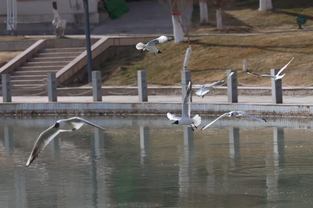红嘴鸥在水面嬉戏。喀什地区融媒体中心 记者余思民 摄