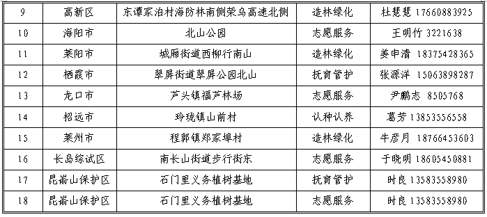 烟台公布18个义务植树点!市民可就近前往参与活动