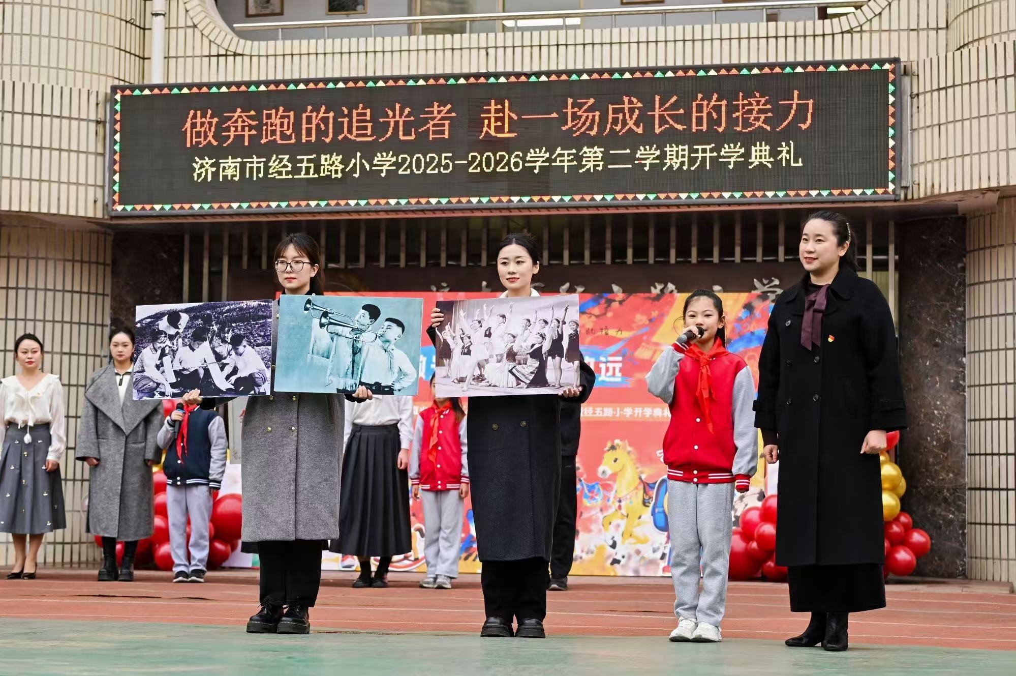 此次开学典礼不仅是一次迎新仪式,更是一堂生动的思政大课。从信仰对话到校史寻根,从躬身实践到创想未来,经五路小学精心设计了“我们在哪里汲取力量——我们因何而坚定——我们如何担当前行——我们将去往何方”的成长逻辑线。在下一步的工作中,学校将继续深化爱国主义教育与理想信念教育,积极落实“健康第一”的教育理念,五育并举,努力培养德智体美劳全面发展的新时代少年!