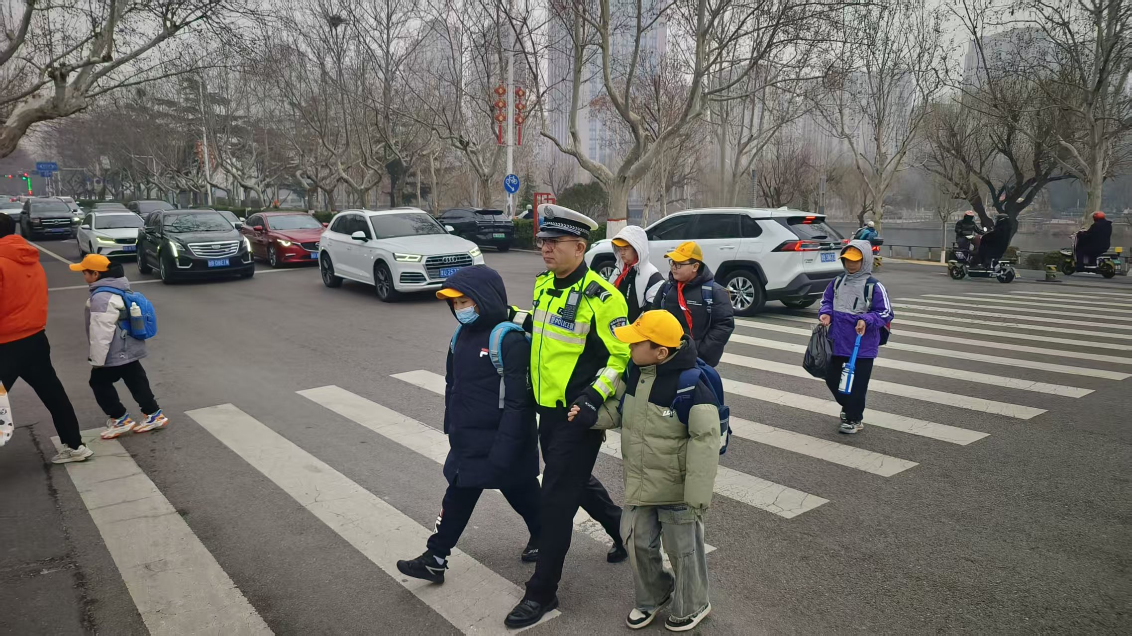 开学首日,即墨公安全面启动“护学岗”勤务,早早来到各学校周边重点路段及校门口布置警力,与学校的师生们一起迎接新学期。晨曦之中交警穿梭在络绎不绝的车流人流里,指挥送学车辆即停即走,有序疏导交通、缓解拥堵。他们牵起孩子们的小手引导安全过马路,耐心提醒家长规范停车,一句句叮嘱都饱含着守护平安的责任与坚守。