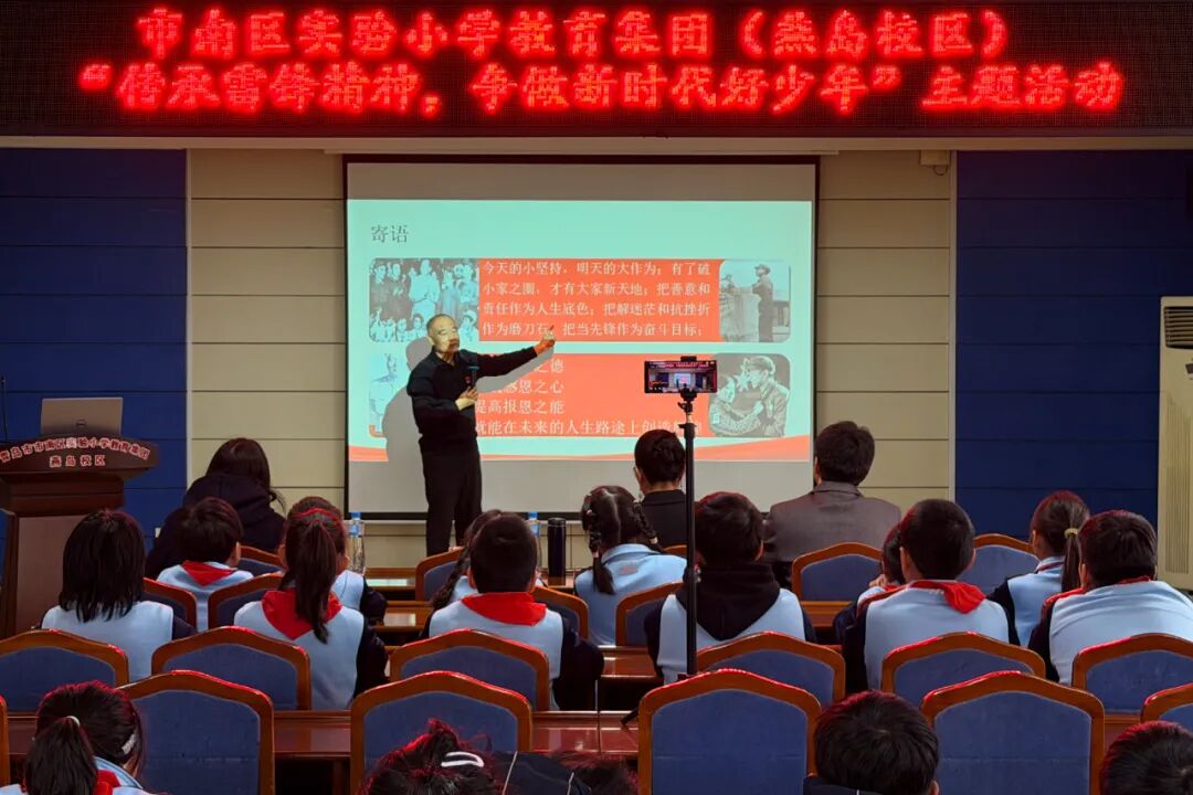 春回大地,暖意渐浓,雷锋精神,薪火相传。为落实立德树人根本任务,引导少先队员以实际行动践行新时代雷锋精神,3月4日,市南区实验小学教育集团(燕岛校区)举办“传承雷锋精神 争做新时代好少年”主题活动。学校邀请青岛市雷锋精神研究会发起人、党支部书记王发令、副会长裴艳敏走进校园,与队员们共赴这场红色精神之约。