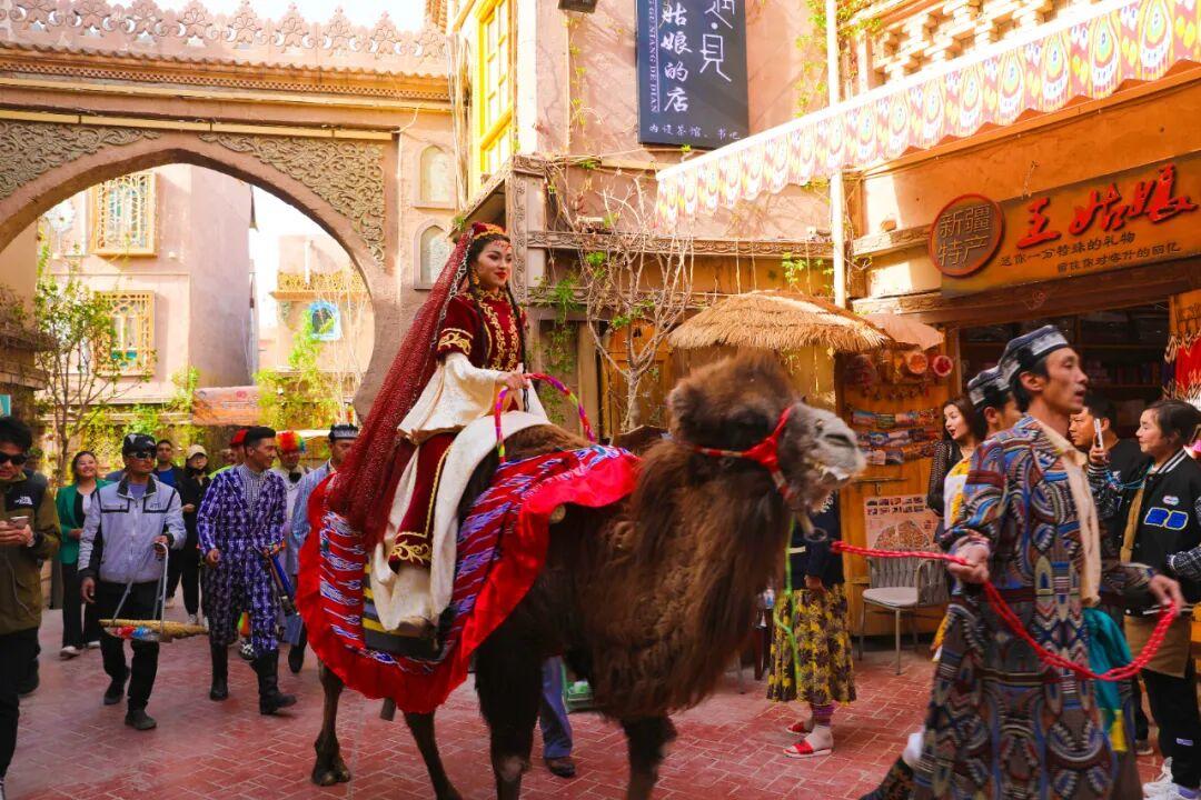 喀什古城景区内的丝路驼队民俗表演。喀什古城景区官方 供图