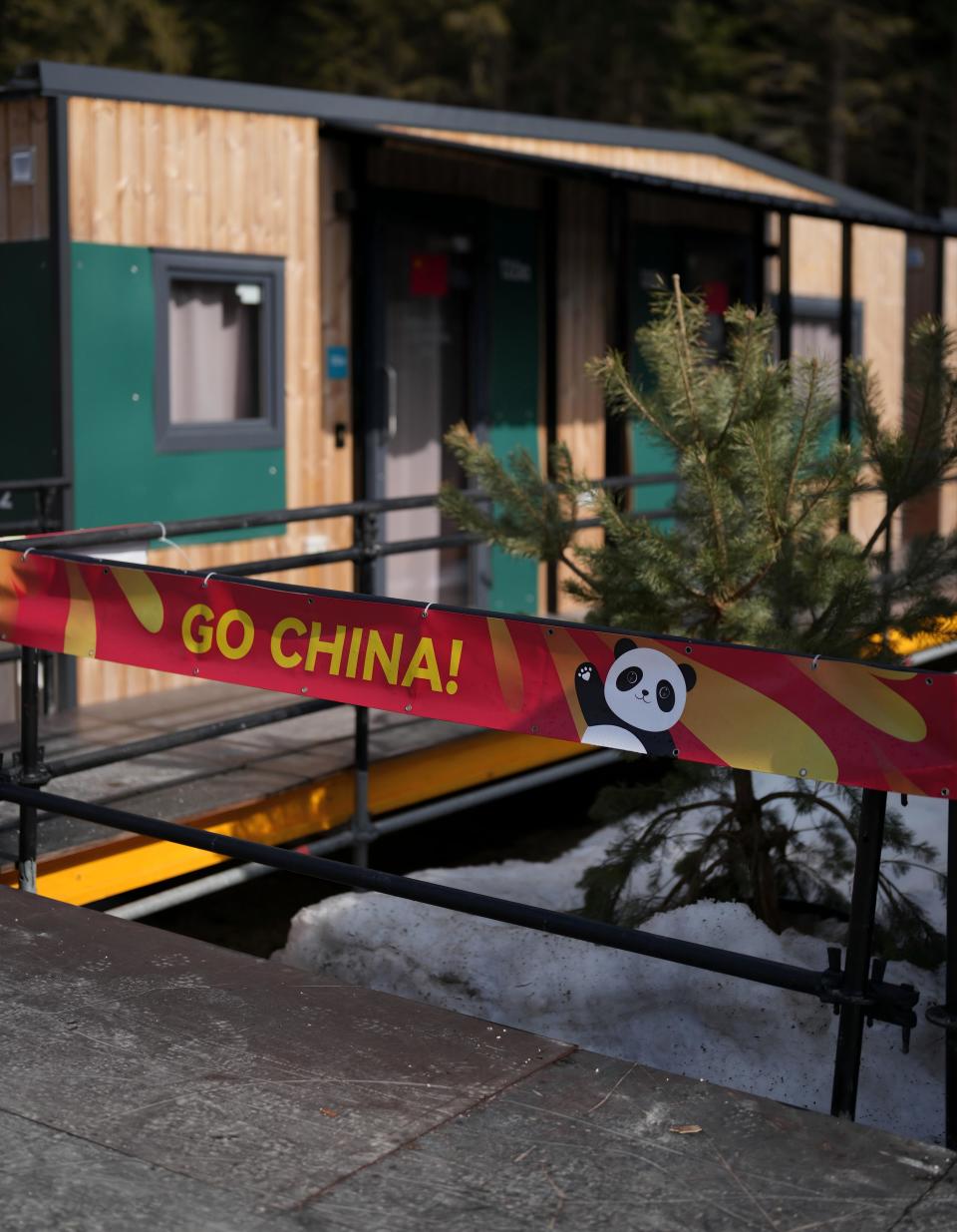 记者在主路两侧看到,已经入驻的各个代表团都在沿路进行了个性化的装饰:法国代表团的横幅上有高山的剪影,澳大利亚代表团则摆放了一只戴着代表团帽子和围巾的鸸鹋塑像;中国代表团横幅上,一只憨态可掬的熊猫举起爪子,旁边写着“GO CHINA(中国加油)!”的字样。