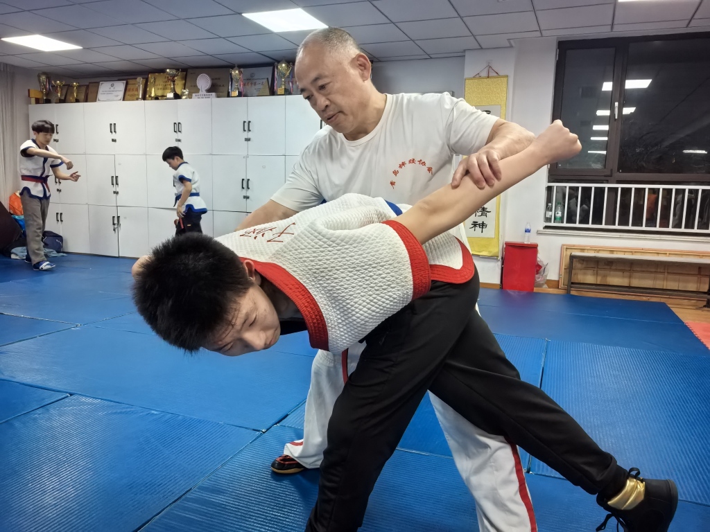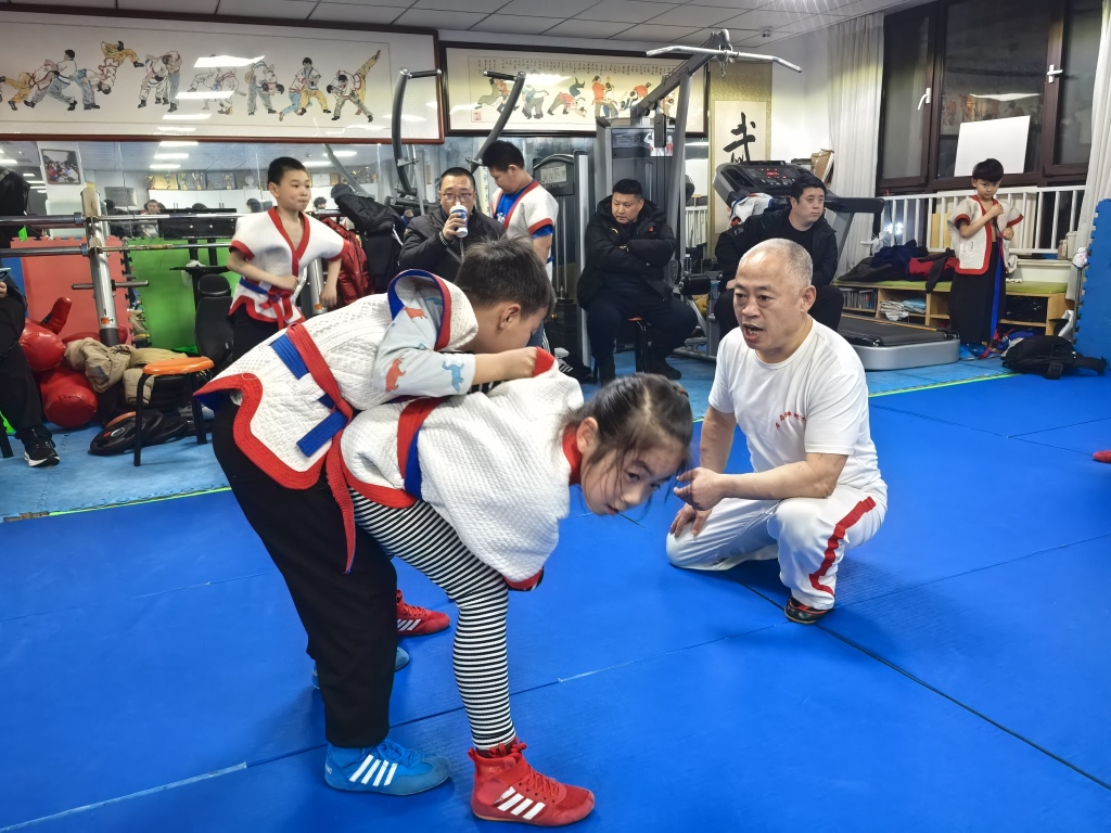 黄保清说,中国式摔跤区别于常见的柔道,入、踢、崴、拿、揣等动作要领组合很多,能提高人的对抗性。