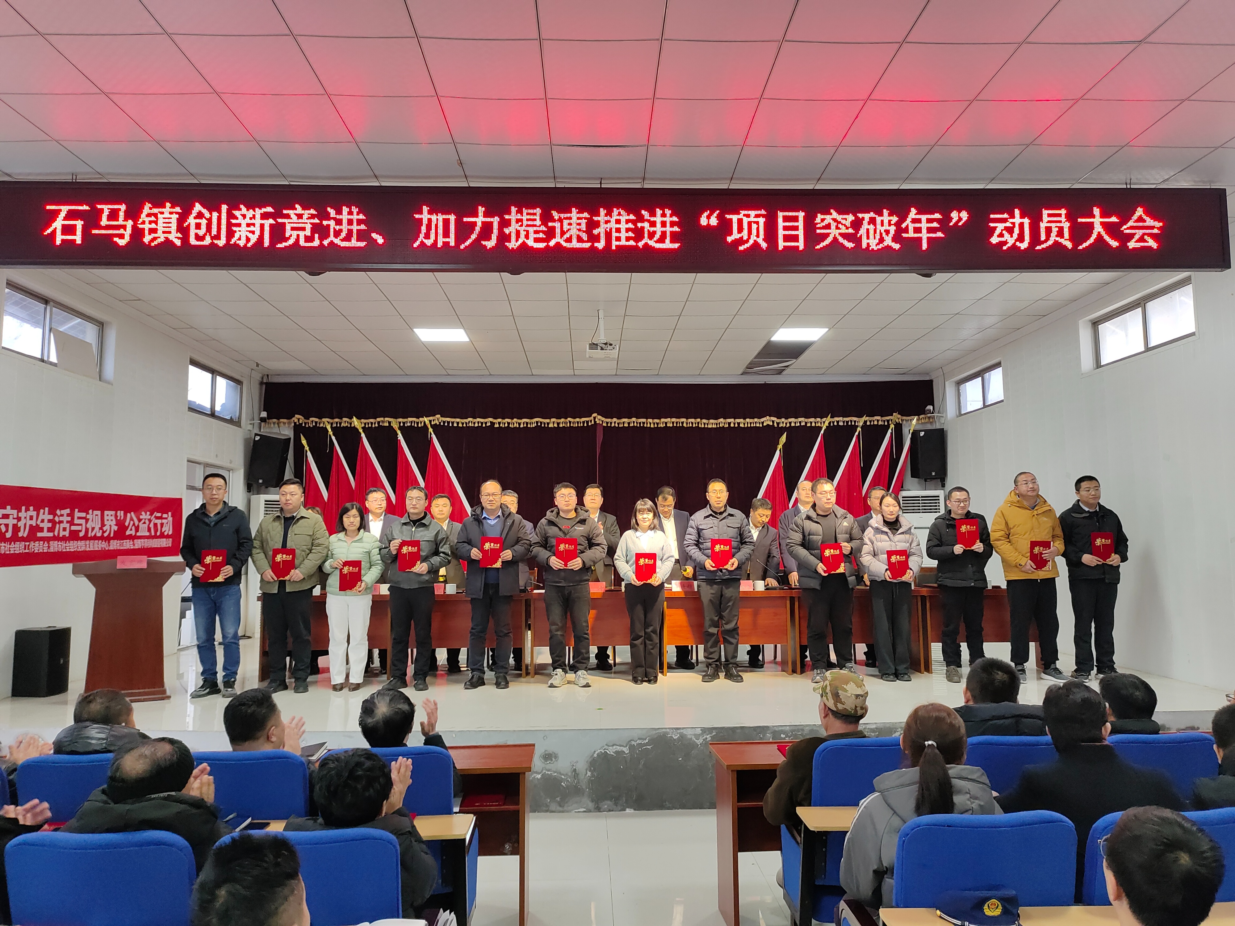 征程万里风正劲,策马扬鞭再奋蹄。石马镇“项目突破年”动员大会进一步凝聚起全镇上下干事创业的强大合力,吹响了新一年攻坚突破的奋进号角。未来,石马镇将以此次大会为新起点,进一步统一思想、凝聚共识、鼓足干劲,以实干实绩推动项目建设、产业发展、民生改善等各项工作再上新台阶,奋力谱写石马镇高质量发展新篇章。