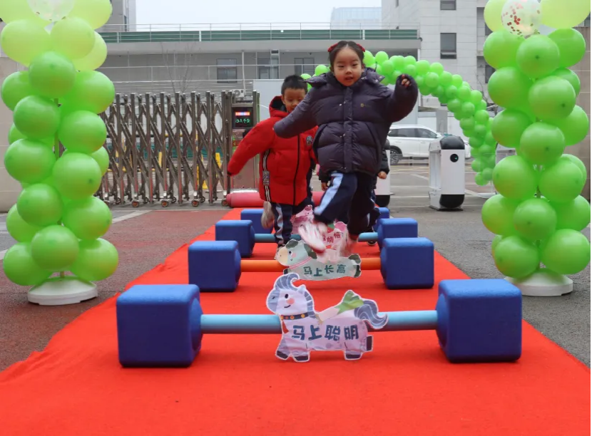 孩子们踮脚、摘福字,亲手将祝福贴满福气墙;一笔描红添吉祥,认领专属小马形象,开启新学期成长印记;依次跨越趣味障碍,大步迈向新成长;在趣味运动中锻炼协调与力量,让健康的体魄,成为童年最亮眼的底色。