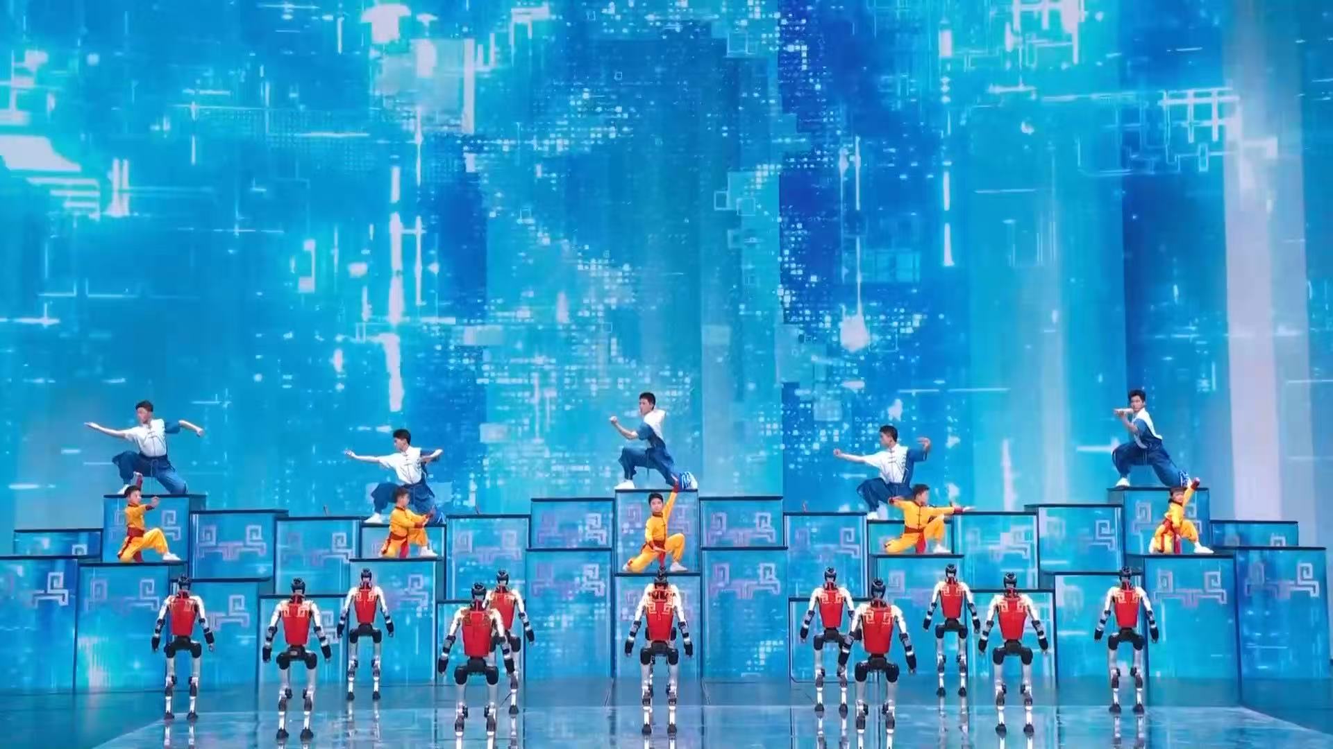 宇树科技工作人员廉莹莹介绍,为了让二十多台机器人的动作与音乐节奏、武术演员以及多变的舞台地形完美融合,团队对每个动作进行了近乎苛刻的微调,甚至为0.1秒的节奏反复打磨。