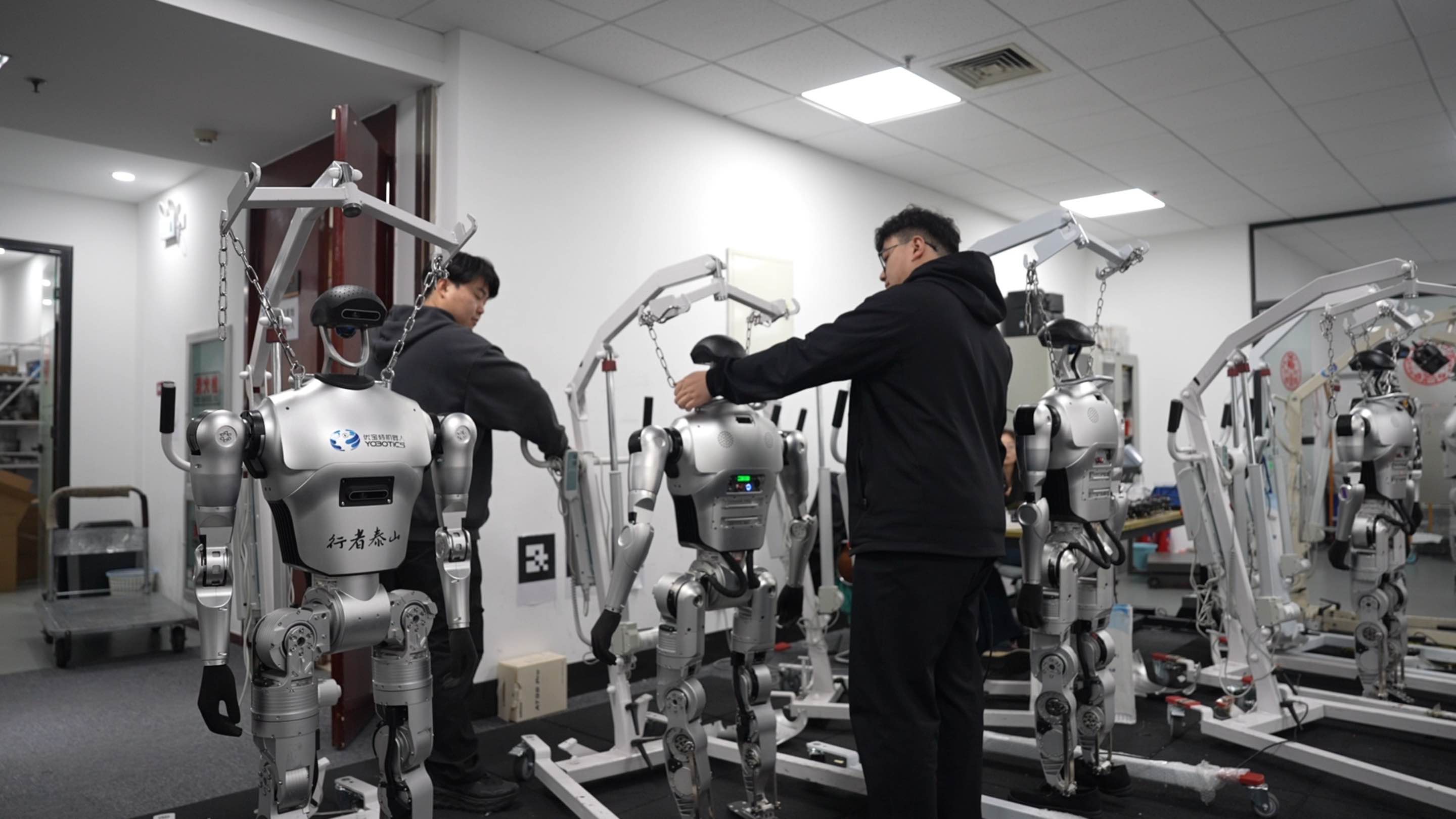 近日,记者来到山东优宝特智能机器人有限公司,看到工作人员正在对多款机器人进行性能调试。新技术部负责人刘工介绍,“我们多年的技术积累在具身智能领域有了很多的突破,比如算力、全身控制、遥操作等。”
