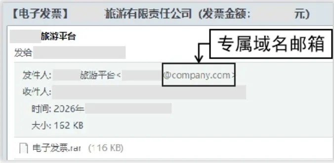 收到来自所谓“财务部门”“发票平台”的邮件,先核对发件人邮箱。正规官方邮箱多含单位专属域名(如“@company.com”“gov.cn”),而钓鱼邮件通常为临时注册邮箱,使用商业公共邮箱常见后缀,要仔细甄别,不点击,不回复。