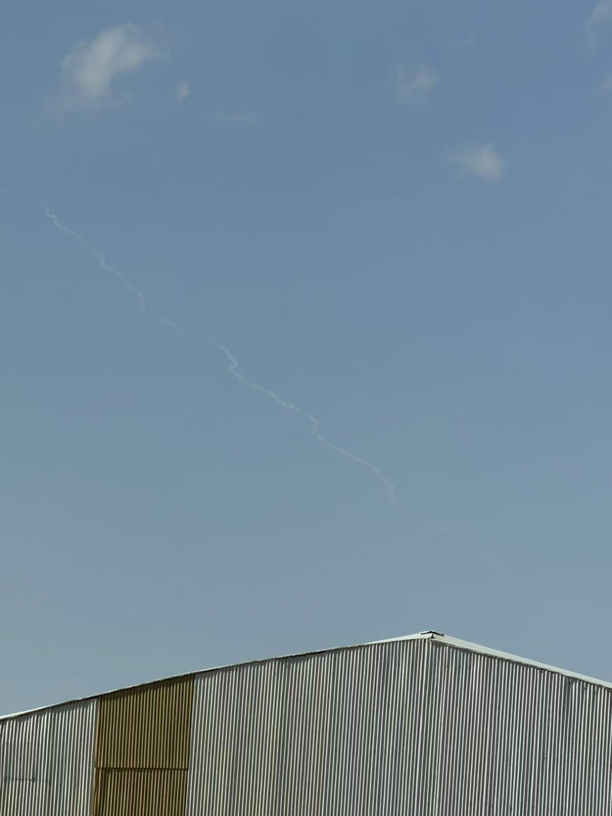 3月4日,伊朗东北部城市沙赫鲁德上空出现导弹飞过的轨迹云。曹海旺摄