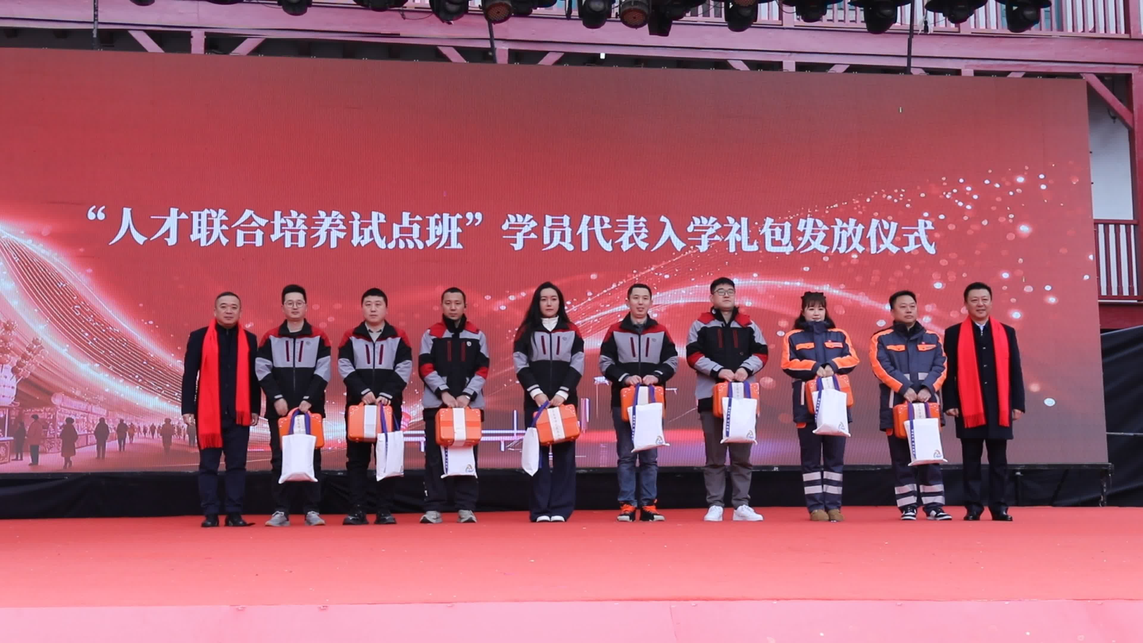 现场还举行了“人才联合培养试点班”学员代表入学礼包发放仪式。当一份份沉甸甸的礼包被送到学员代表手中,这份心意不仅是工会“娘家人”的关怀与支持,更饱含着一份郑重的承诺:在这里,找到的不只是一份工作,更有长远的职业成长通道。