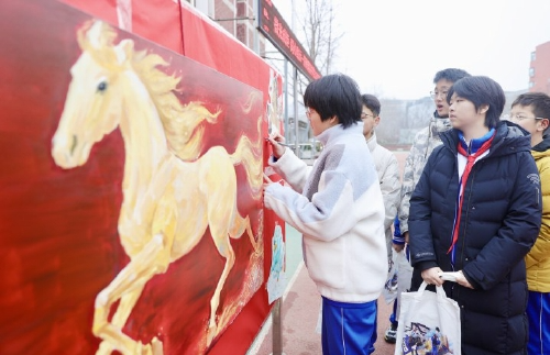 育英中学师生共绘“骏马图”(赵晓明 摄)