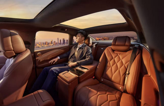 昊铂A800采用“前后双环抱”设计布局,兼顾驾驶乐趣与乘坐舒适。史上最长的6536毫米月晕氛围灯带,打造沉浸式空间体验。30年花曲柳木饰板搭配超柔Nappa真皮,融汇东方美学与现代科技。此外,2+1变形座椅(带智慧中岛)、零重力副驾、机械按摩座椅、三温多控智能冰箱、悬浮式双层遮阳帘、23扬声器旗舰音响等高端配置,覆盖商务、家庭多种场景,让豪华更具温度。