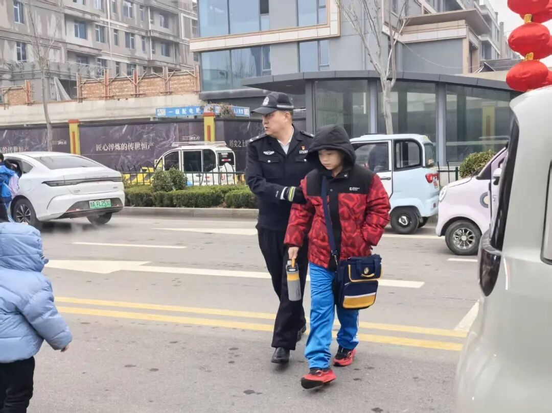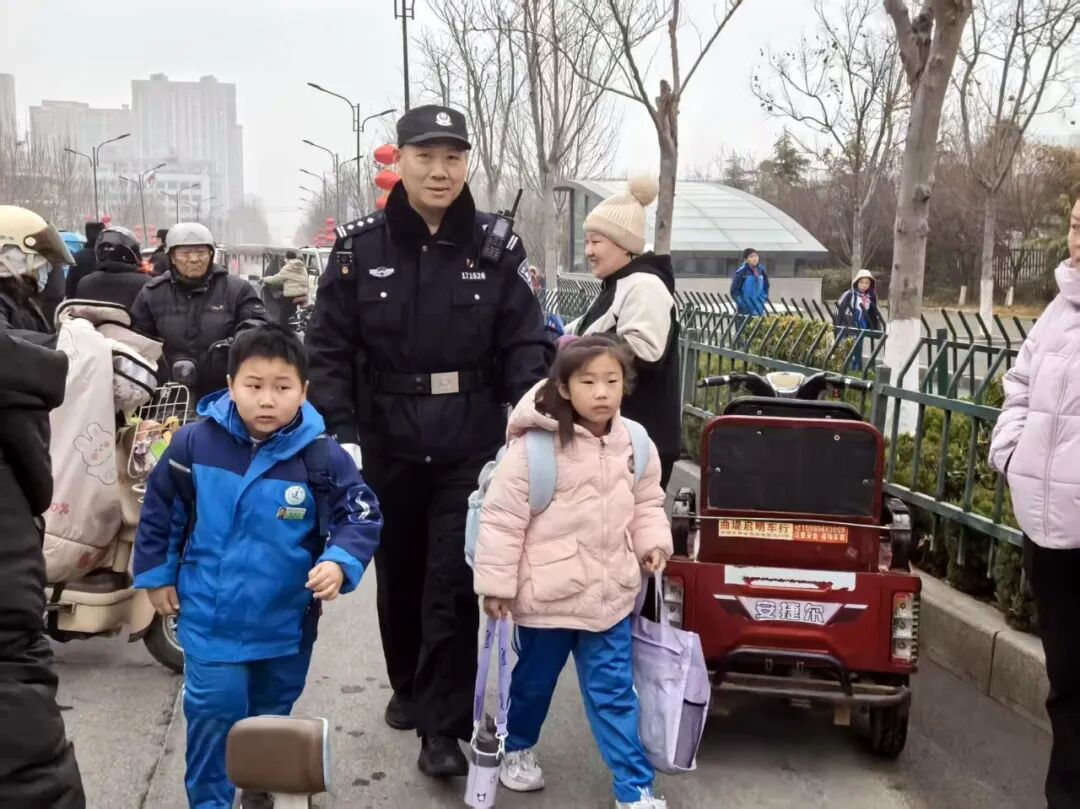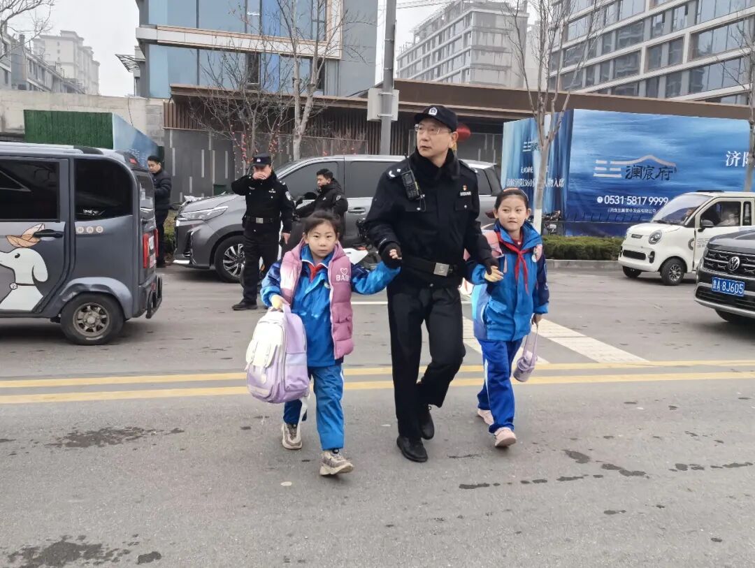 执勤民警牵起孩子们的小手
