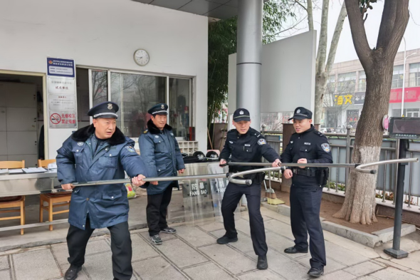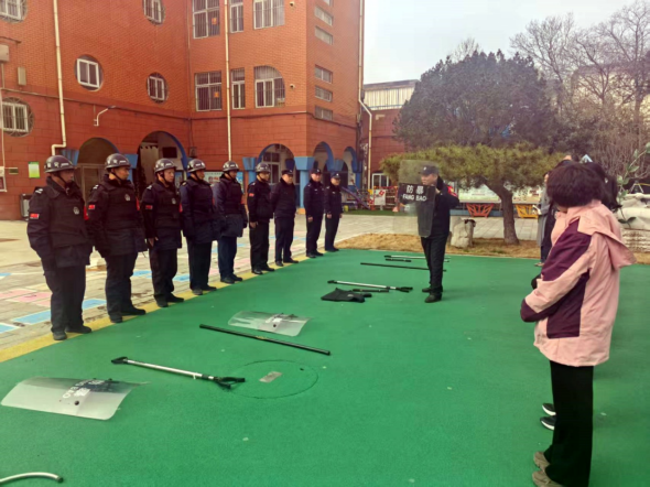 “盾牌顶住,钢叉锁住腰,左右包抄……”济宁任城公安民警、辅警还积极开展“最小应急单元”送教活动,加强对学校内部保卫人员的培训,强化防暴器械使用和战术配合,通过模拟突发场景实战演练,提升了学校自身的快速反应和先期处置能力。