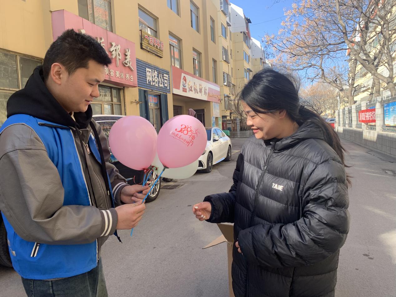 “陈老师,节日快乐!这是送给您的气球”春风送暖,万物复苏。在 “三八”国际劳动妇女节来临之际,仙营街道东红庙社区邮电新苑网格室组织开展了 “巾帼展风采・网格暖人心” 志愿服务活动,为辖区女性居民送上了一份特别的节日祝福。