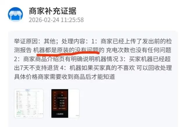 2026年2月,小金就此事联系涉事商家询问此事,对方承认该手机并非全新原装正品,而是所谓的“资源机”或“库存机”。尽管商家在多次表示承诺“100%正品”“官网可查序列号”,但当小金追问是否经过翻新时,客服选择了回避。