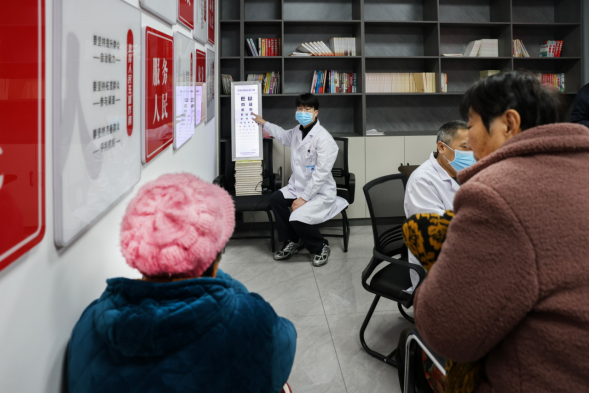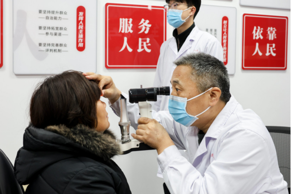 在入户过程中,医疗队还特别关注儿童家庭学习环境的光照条件。“孩子写作业的桌子要尽量靠窗,白天利用自然光;晚上要用护眼灯,灯光要从左上方照下来,避免阴影。”在留守儿童小薇家中,县人民医院眼科医生一边调整书桌位置,一边向她的爷爷详细讲解。医生还检查了孩子的学习桌椅高度,指导调整至适合身高发育的位置,预防脊柱弯曲。