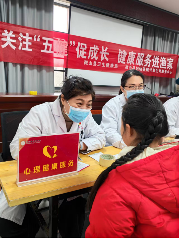 永胜南村三面环水,交通不便,村民到县城就医水陆往返需要近4个小时,孩子们日常的健康监测和医疗保障一直是村里的难题。医疗队针对儿童普遍存在的肥胖、近视、心理健康、脊柱弯曲和龋齿五大健康问题,将专业医疗服务送到渔民家门口。