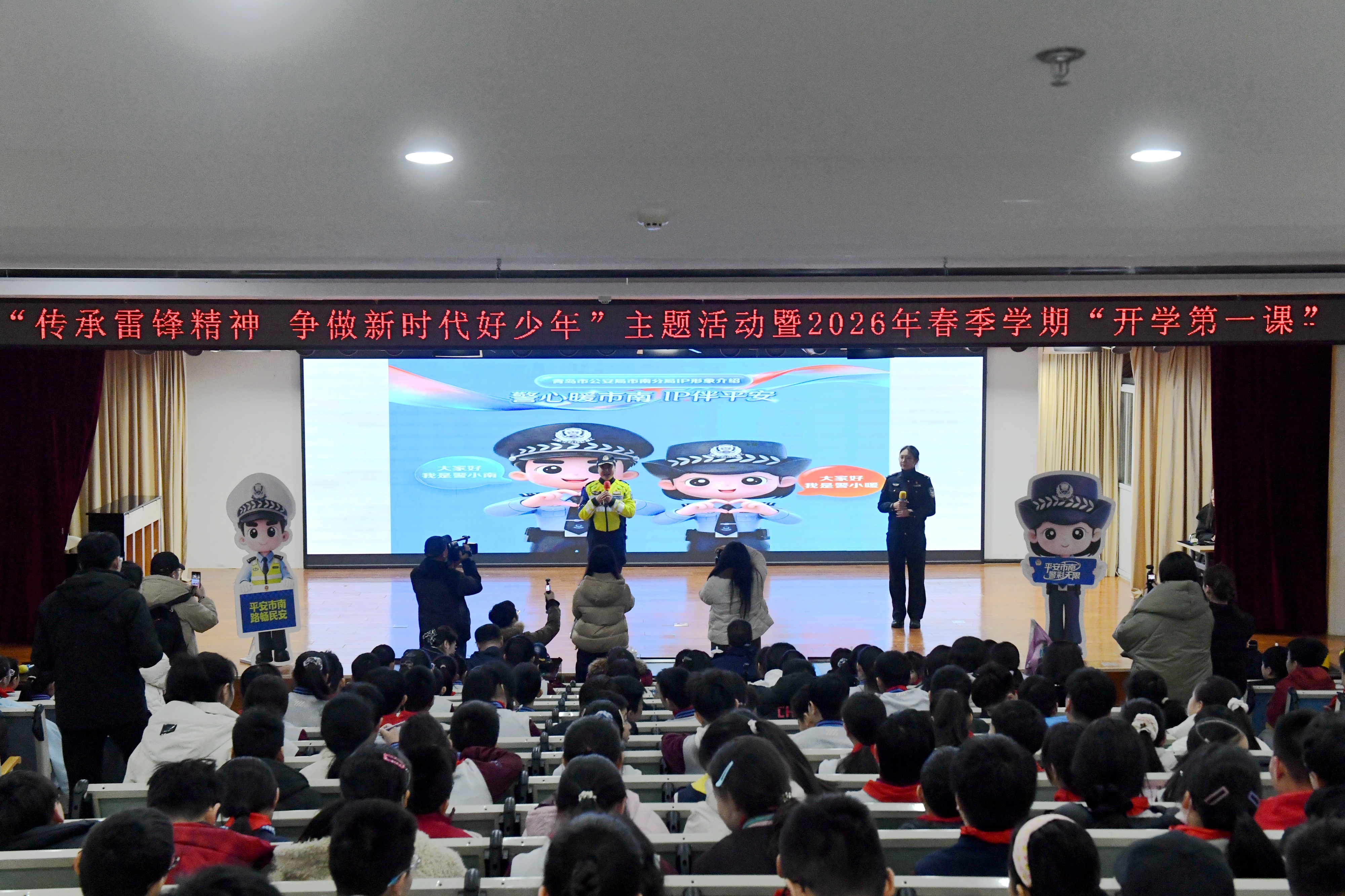 与传统宣讲模式不同,今年“开学第一课”在民警、交警现场讲解交通安全、反诈防骗等安全知识的基础上,创新推出市南公安原创卡通IP形象“警小暖”“警小南”系列安全动画,以寓教于乐的形式,为广大学生送上一堂沉浸式、趣味化、体验式安全普法教育课。