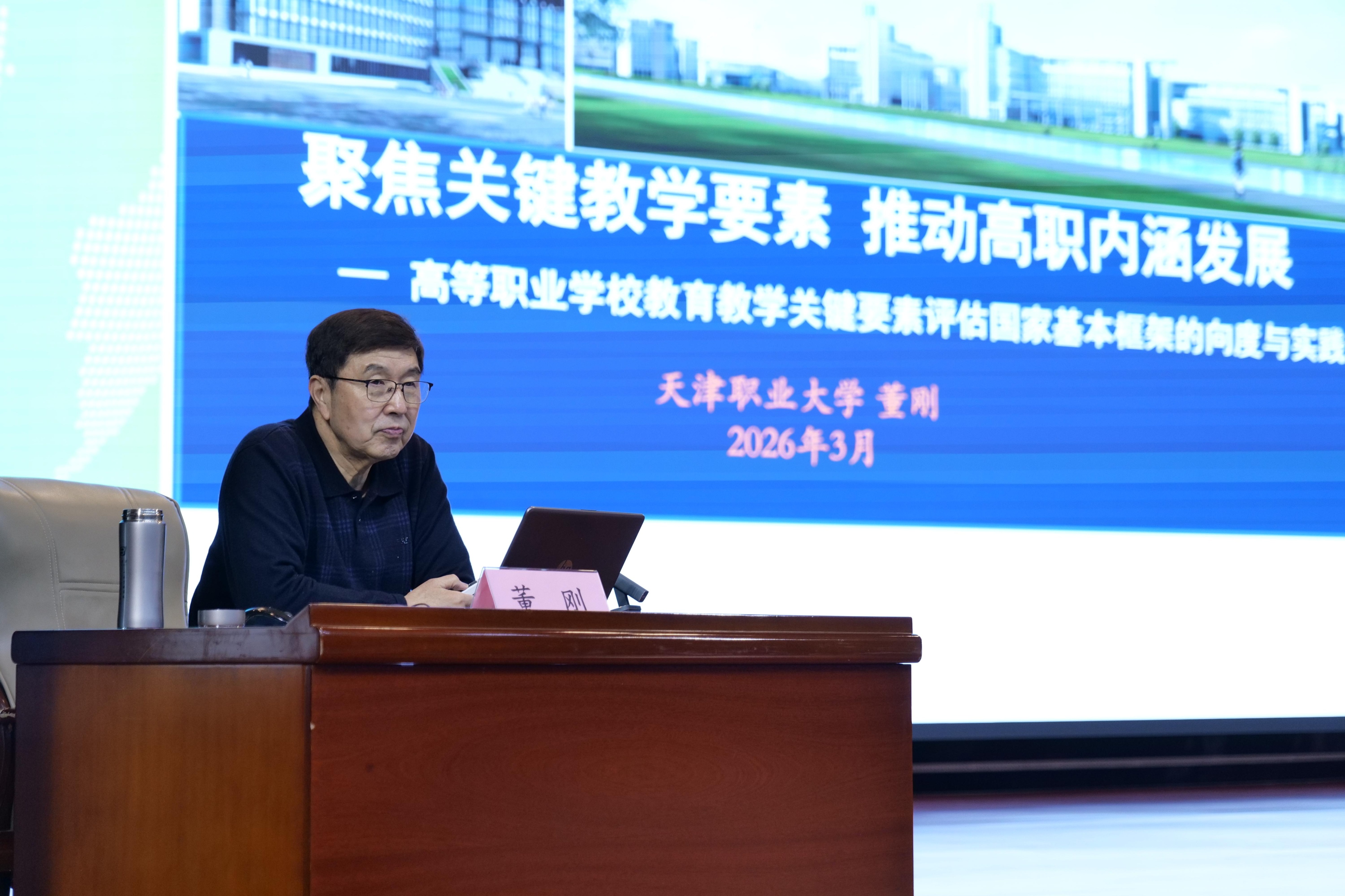 3月2日上午,枣庄职业学院邀请了天津职业大学原校长、教育部高等教育评估评价专家委员会委员董刚教授作专题讲座。学院党委副书记、院长梁家和主持培训并讲话,学院全体领导班子成员及教职工参加培训。培训紧密围绕国家职业教育改革发展的系列重大部署,详细解读了专科层次高等职业学校办学能力评价的最新政策要求,为学校明确内涵建设核心任务、推进双高建设、全面备战2027年办学能力评估工作提供了清晰的实践指引。