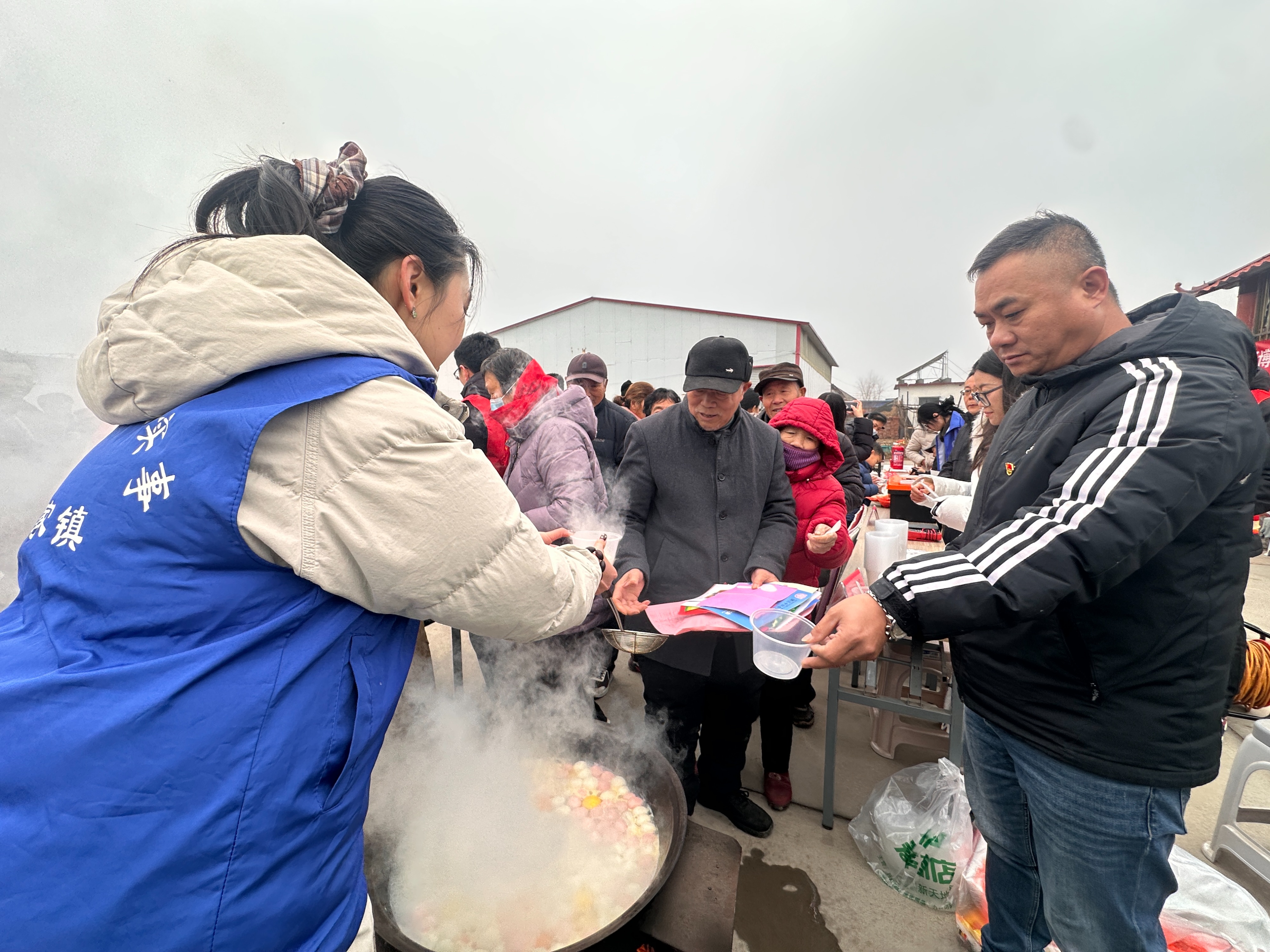 青年志愿者给村民送汤圆。