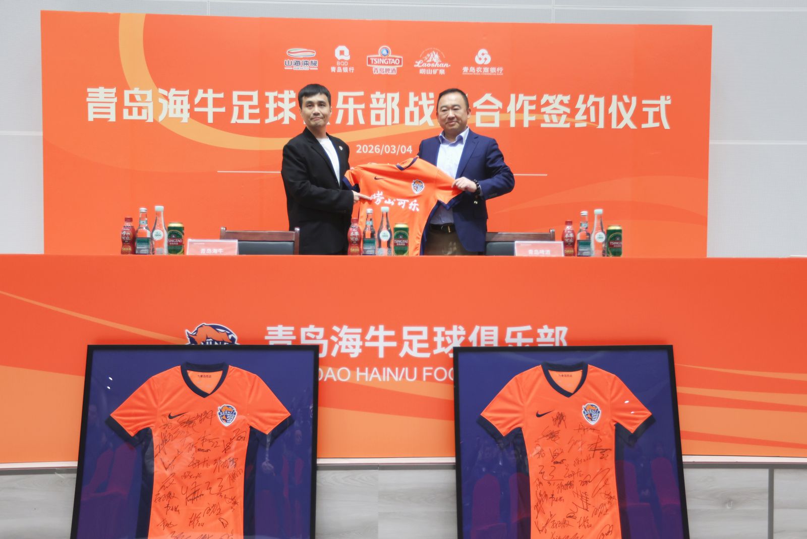 3月4日,青岛海牛足球俱乐部2026赛季出征仪式在青春足球场举行。2026赛季,青岛海牛足球俱乐部将携手青岛本土品牌青岛啤酒、青岛饮料集团、青岛银行、青岛农商银行一同为这座城市的荣誉而战,出征仪式中,俱乐部与该4大品牌进行了签约仪式,携手向前。活动期间,塞尔维亚籍新帅米兰携全体将士率先登场,新赛季球衣由部分球员展示,胸前广告“崂山可乐”也首次亮相。主帅米兰认为球队的赛季目标应该不止于保级,“新赛季的球队战术会与以往会有很大不同,他们将摒弃过往赛季使用的五后卫战术,球队将会踢得更具攻击性,并会用百分百的努力为青岛这座城市而战。”