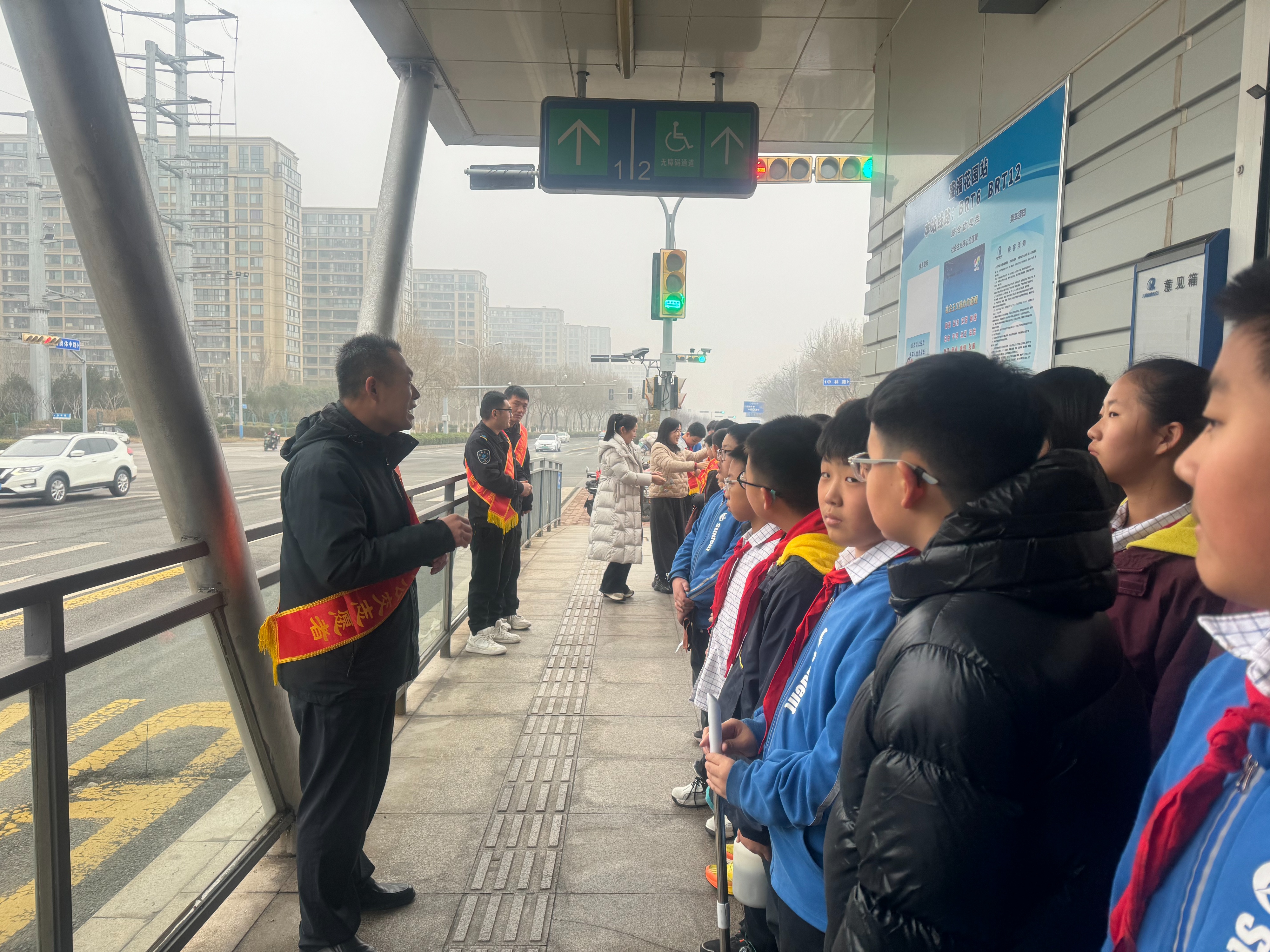 干线分公司站务管理部“BRT我为群众办实事”志愿服务队携手济南市盛福实验小学六年级的20余名小学生,在盛福花园BRT站台共同开展“传承雷锋精神 爱心奉献社会”主题志愿服务活动。活动现场,高星级站务员杜筱晗、陈辉等人为参加活动的小朋友们开展了站台乘车安全知识大课堂,结合自身工作经验,细致讲解站台候车礼仪、乘车安全要点等内容,引导孩子们树立安全出行意识,争做文明乘车小卫士。随后,高冰冰带领小朋友们一同清理站台卫生,擦拭站台设施,用实际行动教会孩子们“奉献不分大小 行动彰显担当”。