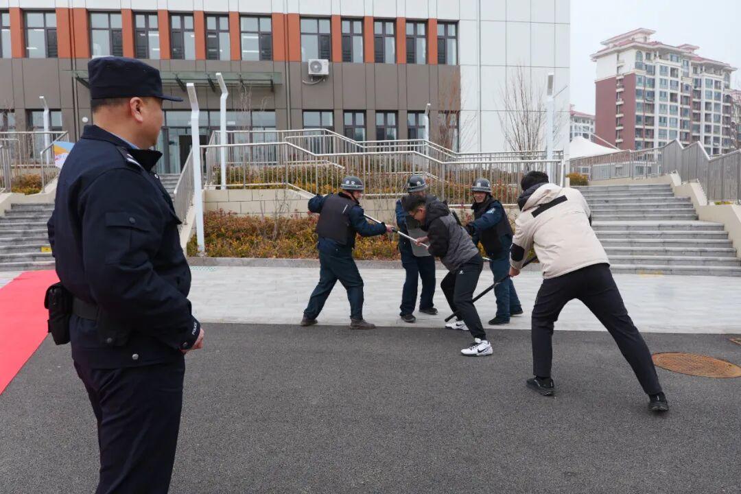 为提升校园应急处置能力,民警深入校园开展安全集中培训,通过“理论授课+实战演练”相结合的方式,对各学校的最小应急单元进行全面培训。为校园安保力量“充电赋能”,全力守好校园安全第一道防线。