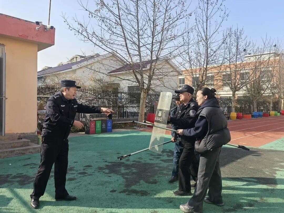 “防暴钢叉要这样握,既能控制住对方,又能保护自己。”“遇到突发情况,首先要冷静,第一时间报警并疏散师生。”在滨城区第十中学,民警手把手教授保安员如何正确使用防暴器械,如何快速应对突发事件。