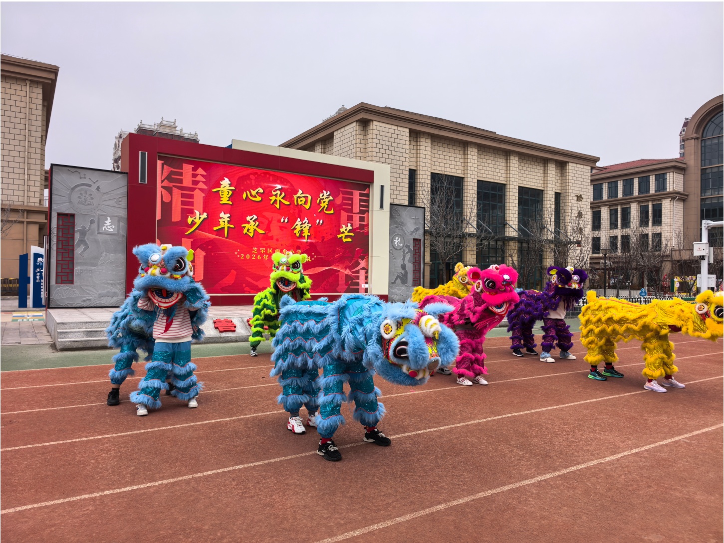 上午8时30分,典礼在庄严的升旗仪式中拉开帷幕。鲜艳的五星红旗冉冉升起,全体少先队员行队礼,嘹亮的国歌声响彻校园。随后,龙狮少年团带来《龙狮跃动启新程》表演,铿锵的鼓点与灵动的龙狮舞步,展现出少年们朝气蓬勃的精神风貌。