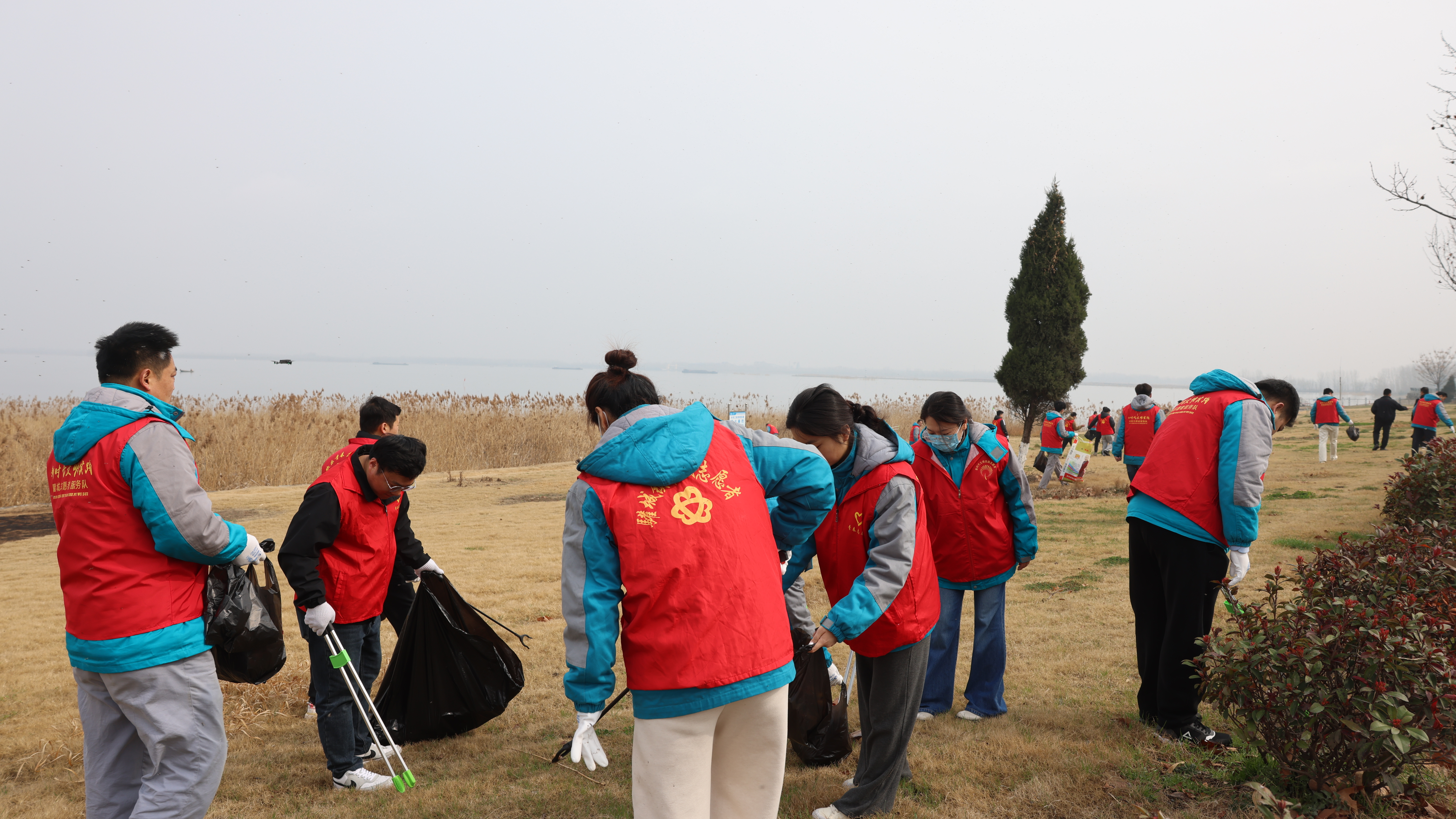 随后,志愿者们携带垃圾袋、夹子等工具,分工协作、默契配合,深入湿地沿岸清理塑料垃圾、纸屑等杂物。大家不怕脏、不怕累,用双手守护湿地洁净,以志愿服务践行雷锋精神,将红色担当转化为守护生态环境的实际行动。