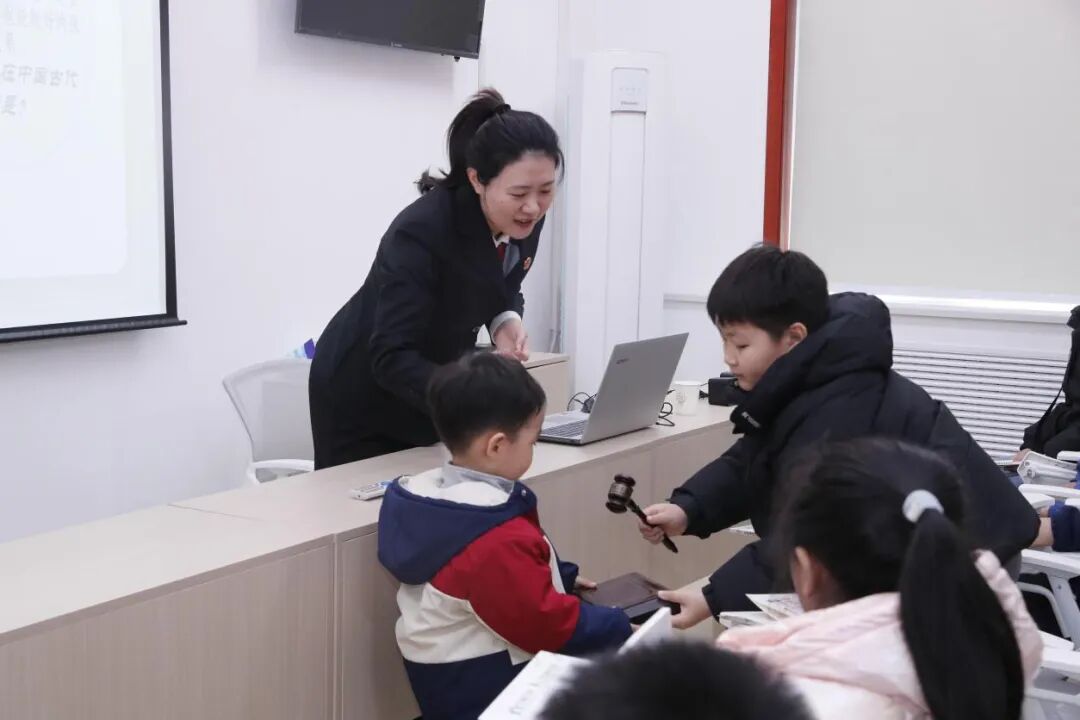 宣讲设置了试穿法袍、敲击法槌、以案说法等趣味现场游戏,未成年人亲身感受到了法官职业的庄严与神圣,进一步树立起敬畏法律、遵守法律的理念。