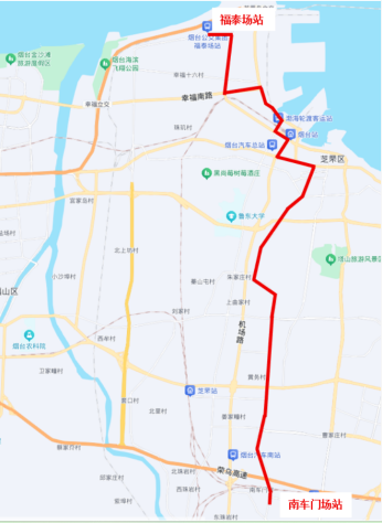 由城南场站发车,沿通海路、工商大街、西关路、北关大街、G228、观海路运行至烟台人才市场。