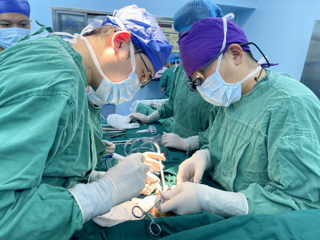 杨元爱主任(右)、梅董昱主任(左)与团队在术中