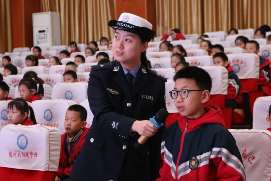 “同学们,如果陌生人在放学路上给你糖吃,说要带你去找妈妈,你应该怎么做?”“谁知道过马路除了看红绿灯,还要注意什么?”在德城区湖滨北路小学的多功能教室里,民警化身为“安全讲师”,通过情景模拟、互动问答等生动有趣的形式,将枯燥的交通安全、防诈防拐、禁毒知识变成了孩子们听得懂、记得住的“安全秘籍”。一颗颗安全的种子,就这样在欢声笑语中,悄悄地在孩子们心中生根发芽。